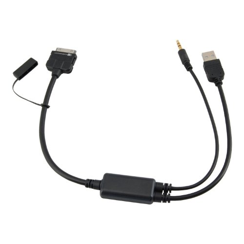 Decrescent Connecteur pour station d'accueil vers câble jack stéréo de sortie audio 3,5mm (AUX) et prise USB et câble audio compatible avec l'interface iDrive BMW et Mini Cooper pour iPod, iPhone et iPad d'Apple - Ce câble de sortie audio de haute qualité est compatible avec tous les iPod, iPhone et iPad d'Apple (sauf le iPod Shuffle), permettant de brancher directement la prise 30 broches de votre appareil à la sortie USB ou AUX de la console centrale de votre voiture. Grâce à la prise USB, vous pouvez recharger votre iPod, iPhone ou iPad tout en synchronisant vos données.